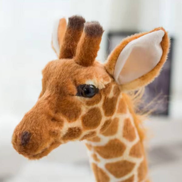 De giraffe is gemaakt van zacht pluche materiaal en heeft mooie bruine en witte vlekken. Het materiaal voelt heerlijk zacht aan en is perfect om mee te knuffelen. Het stevige frame van metaal zorgt ervoor dat de giraffe goed kan blijven staan zonder om te vallen.