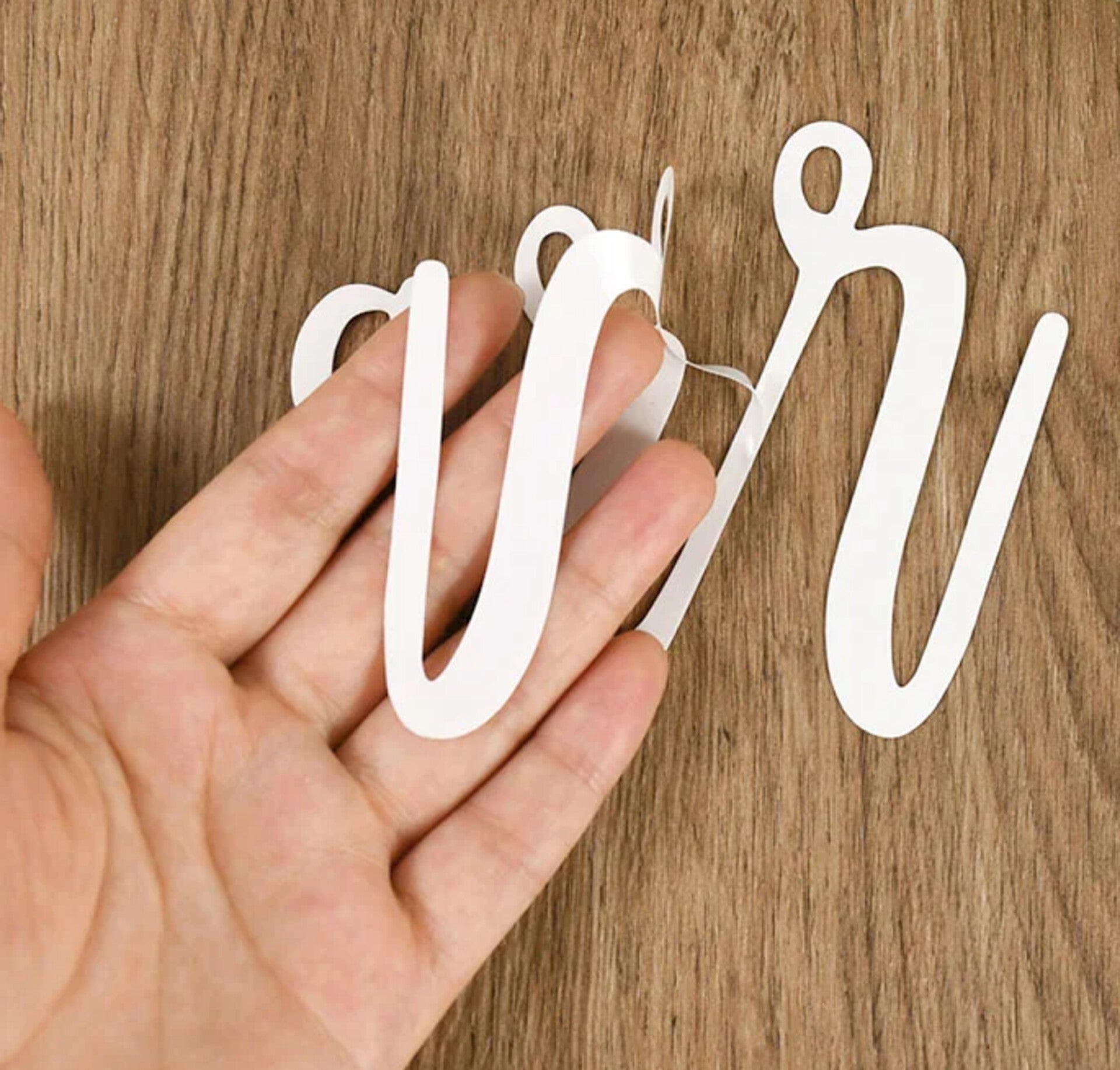 Afmeting: in totaal ongeveer 55 cm breed. De verschillende letters hebben verschillende afmetingen em je kunt zelf kiezen hoe je de tekst precies aanbrengt.