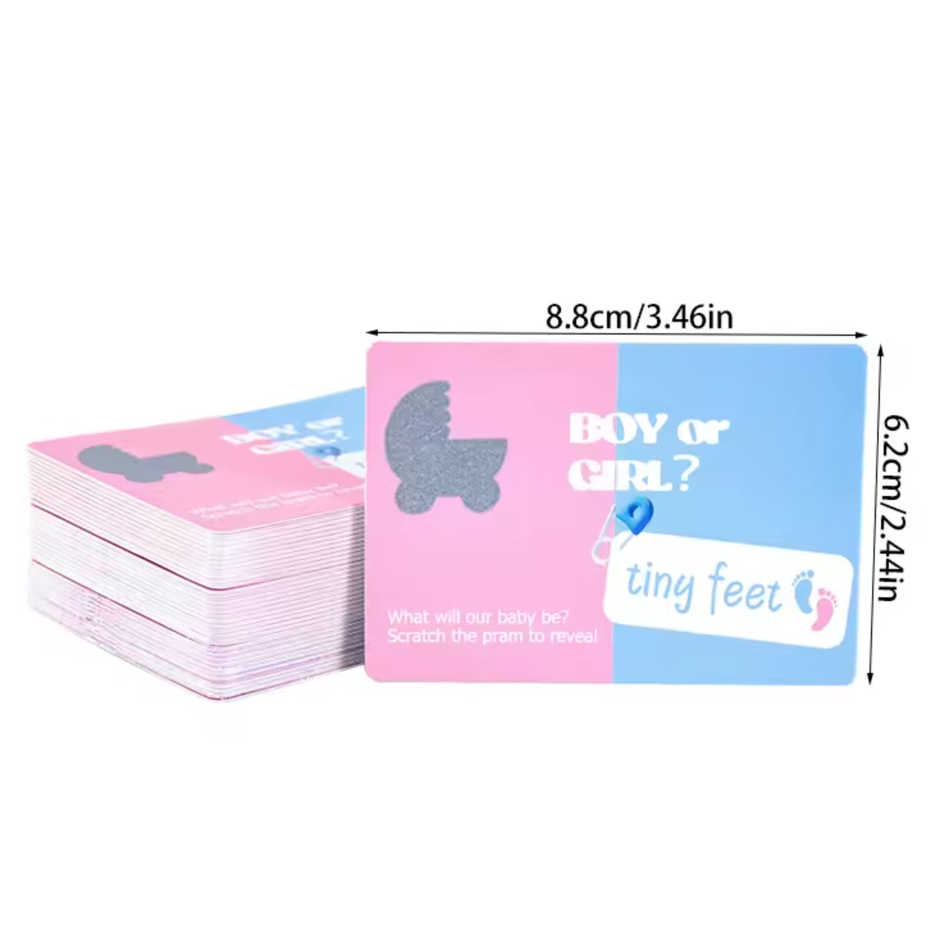 Genderreveal kraskaarten spel Girl or Boy met 18 kaarten