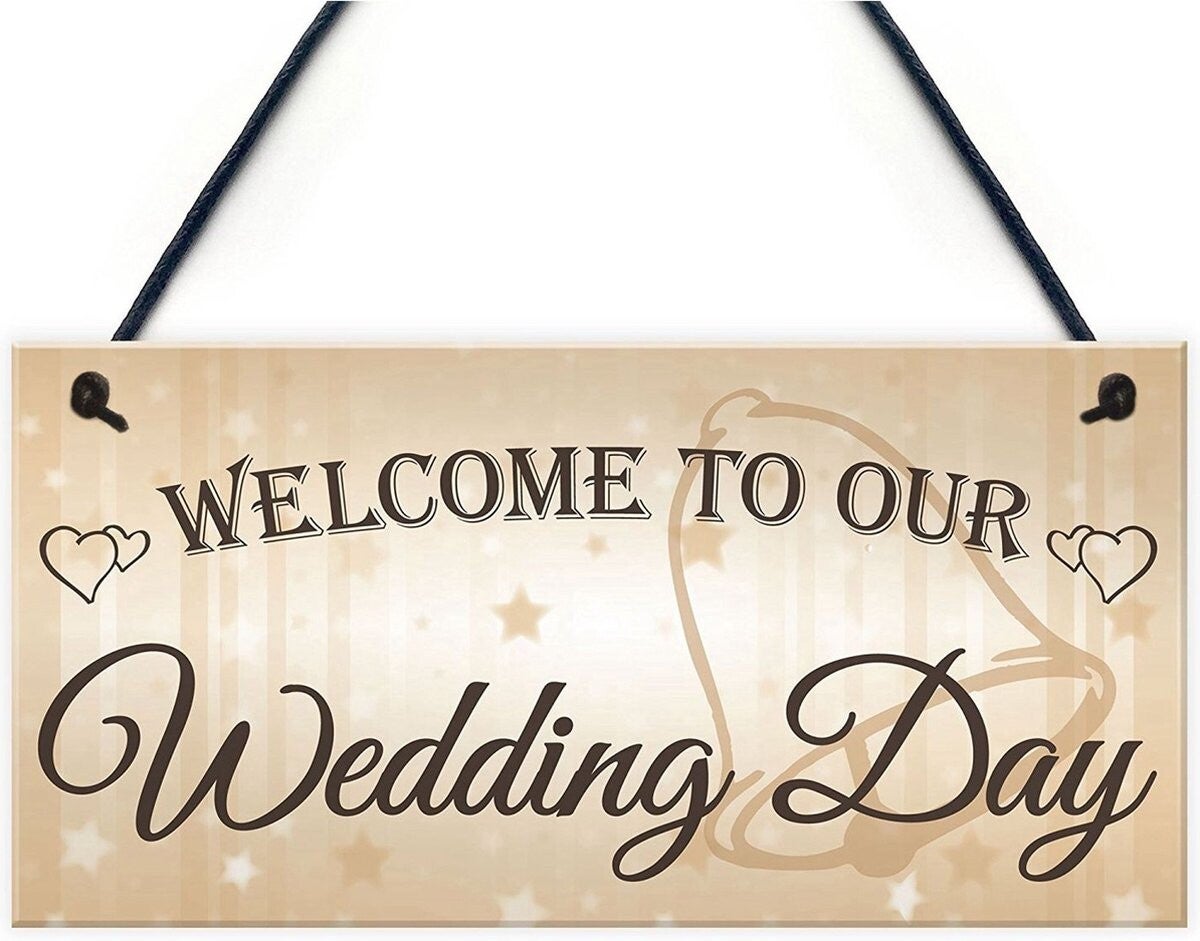 Houten bord aan touw met de tekst Welcome to our Wedding.