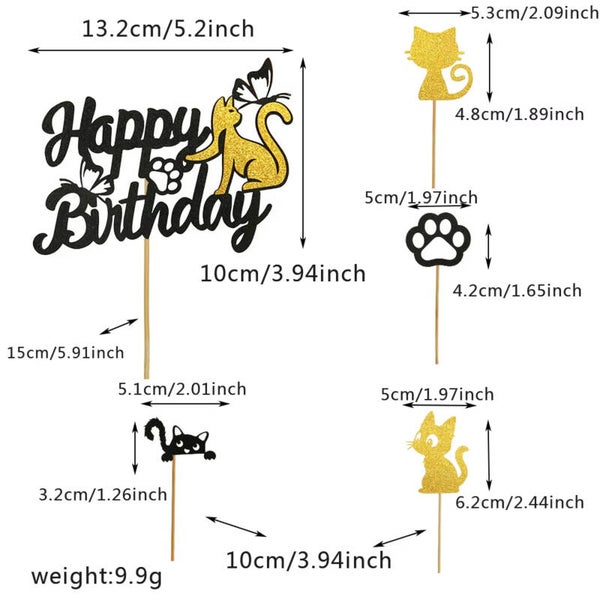 Poezen taart en cupcaketopper set Happy Birthday 13-delig