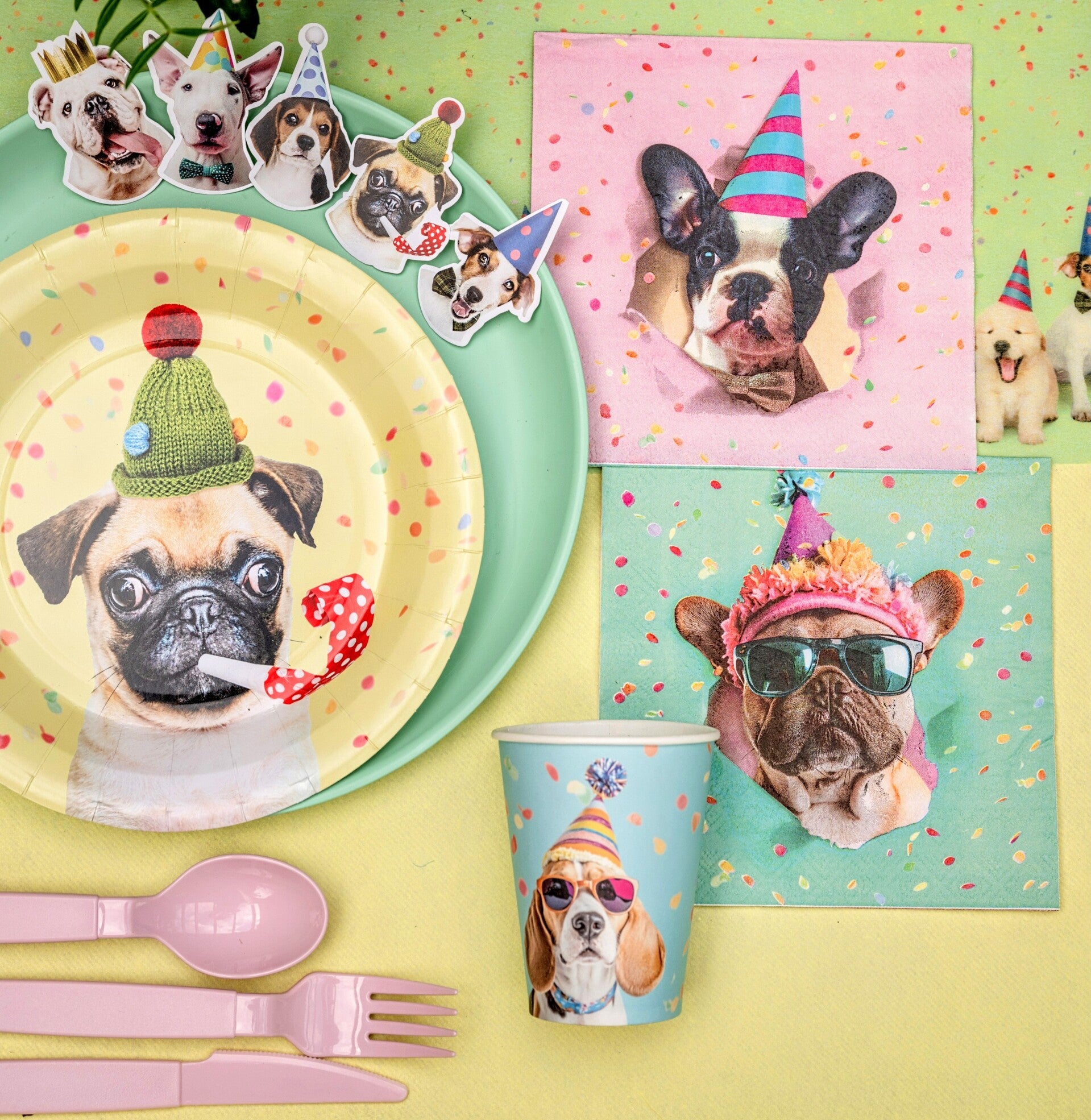- 1 pak bordjes Dogs multicoloured. Doorsnede: 22,5 cm. Prijs per 6 stuks