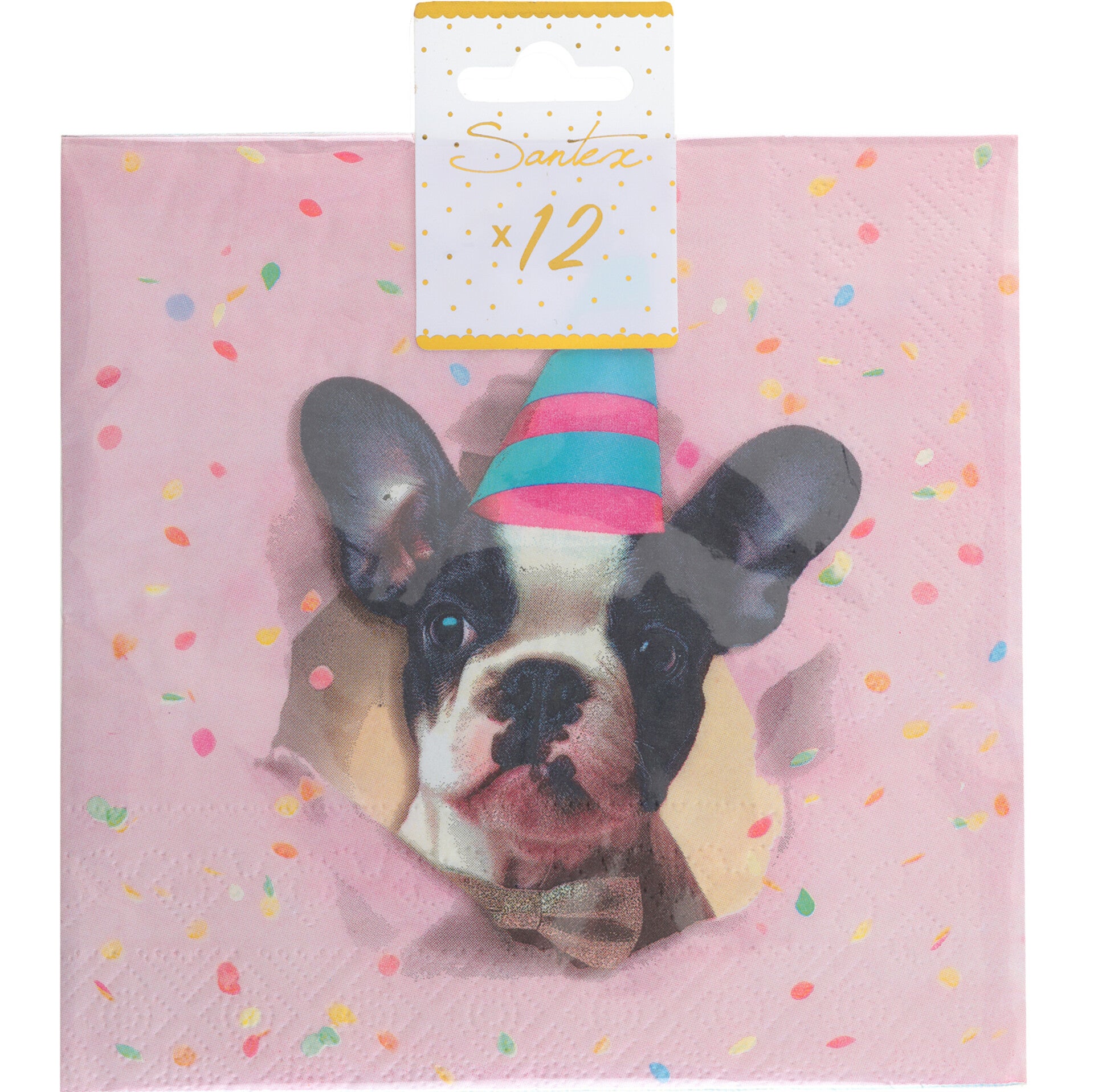 - 1 pak servetten Dogs multicoloured. Afmeting: 33 x 33 cm. 3 x gevouwen. Prijs per 12 stuks
