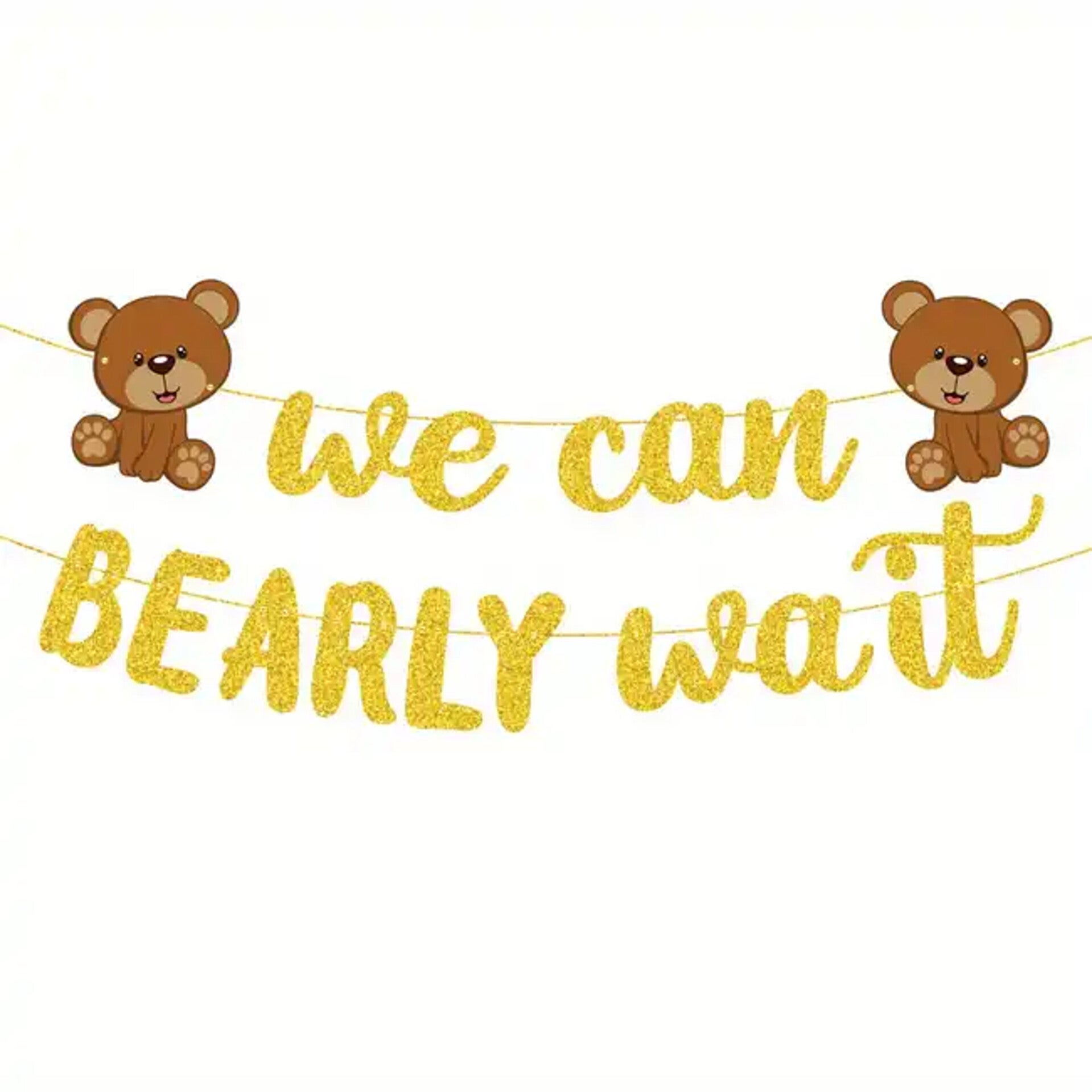 - 1 Dubbele slinger We can Bearly Wait en Bruine Beertjes. De slinger We can Bearly Wait slinger bestaat uit 2 beertjes van ongeveer 17,5 cm hoog en 14 cm breed en de tekst We can Bearly Wait in goud glitter. De bruine beertjes slinger bestaat uit 8 beertjes van ongeveer 17,5 cm hoog en 14 cm breed. Materiaal: karton