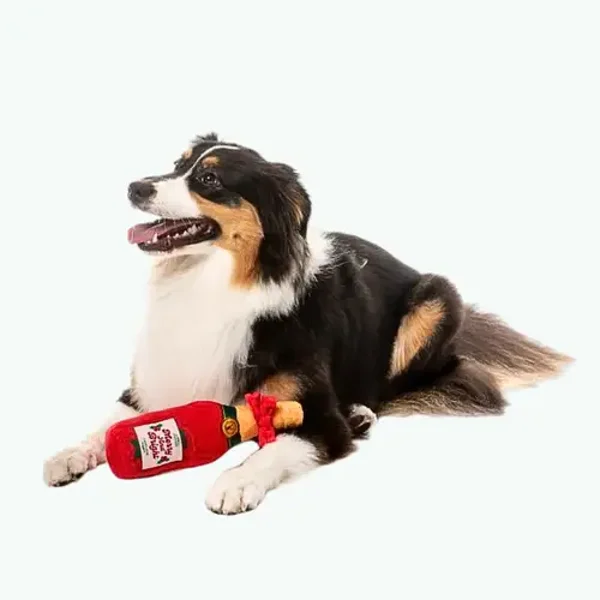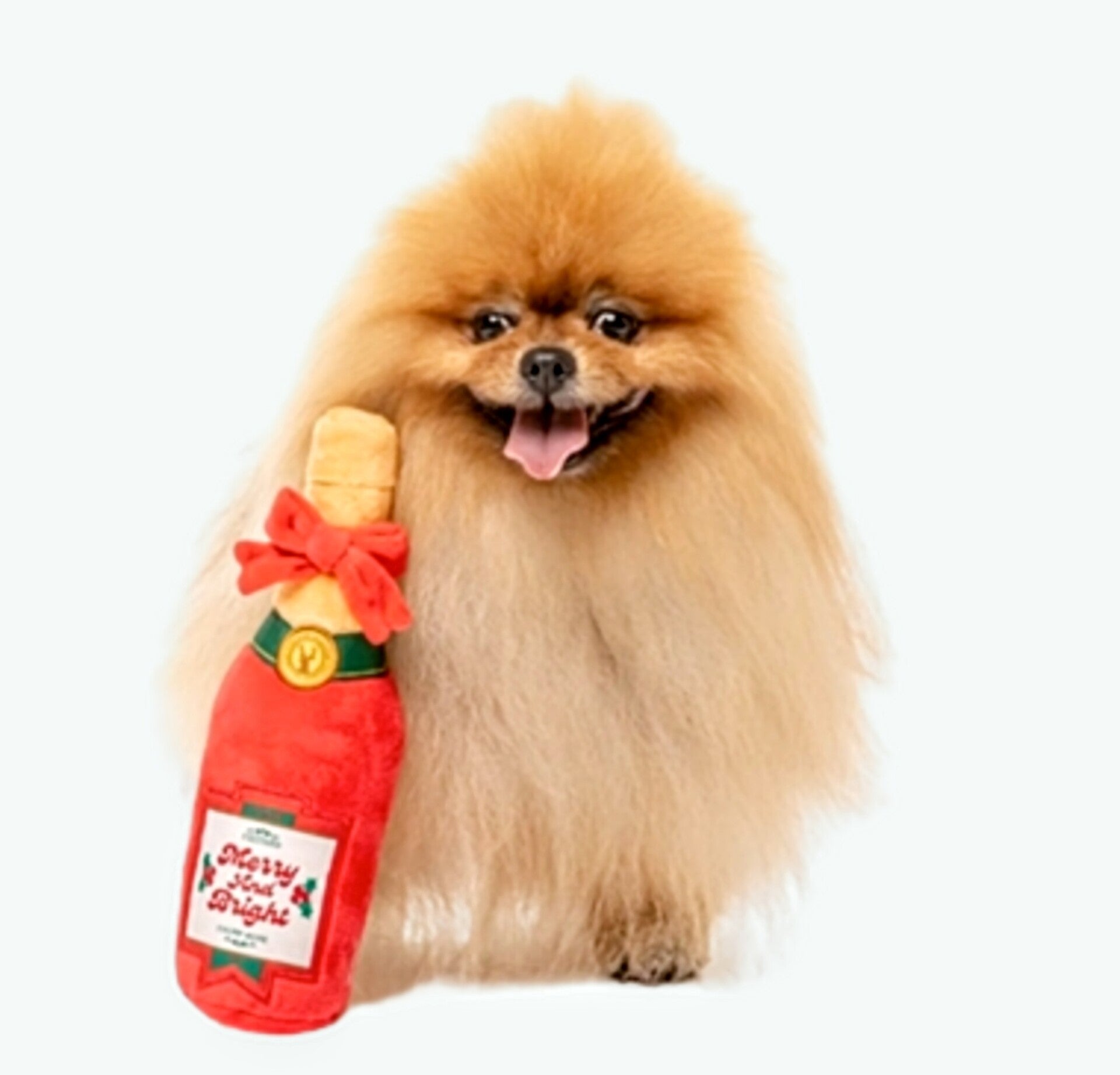 De Fuzzyard Merry & Bright Chomp-Agne is een feestelijk hondenspeeltje in de vorm van een pluche champagnefles, compleet met rood lint en kerstlabel. Deze stijlvolle ‘bubbel-knuffel’ zorgt gegarandeerd voor een sprankelend speelmoment onder de boom. Perfect om mee te spelen én om mee te knuffelen!